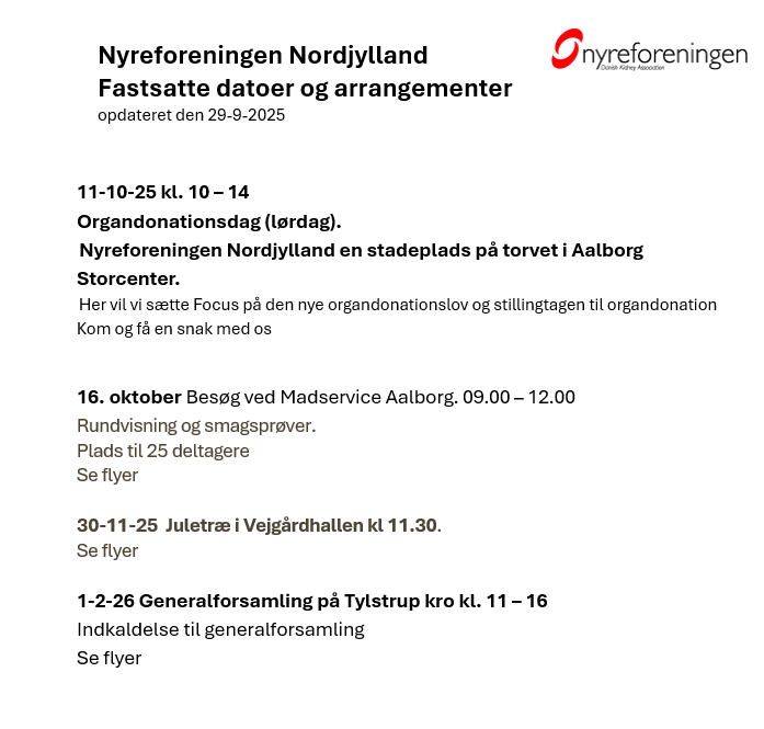 Velkommen til Nyreforening Nordjyllands hjemmeside Flyer Besøg Aalborg Madservice Flyer Juletræ i vejgaardhallen Flyer Generalforsamling 2026