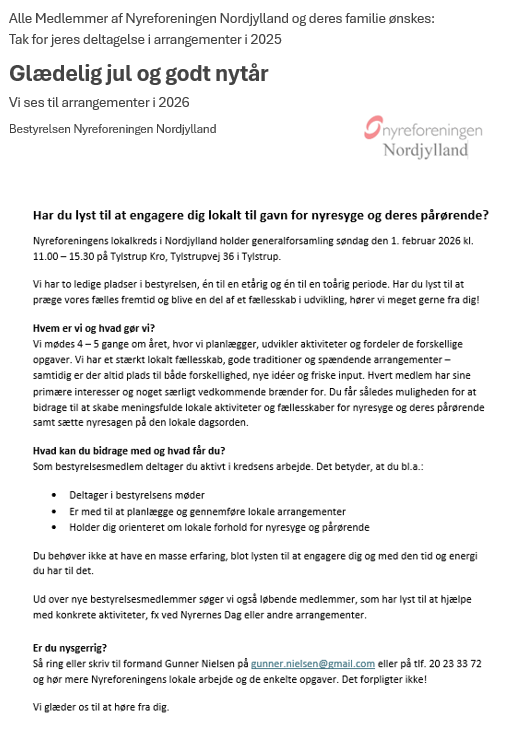 Der indkaldes til generalforsamling den 1 februar 2026,